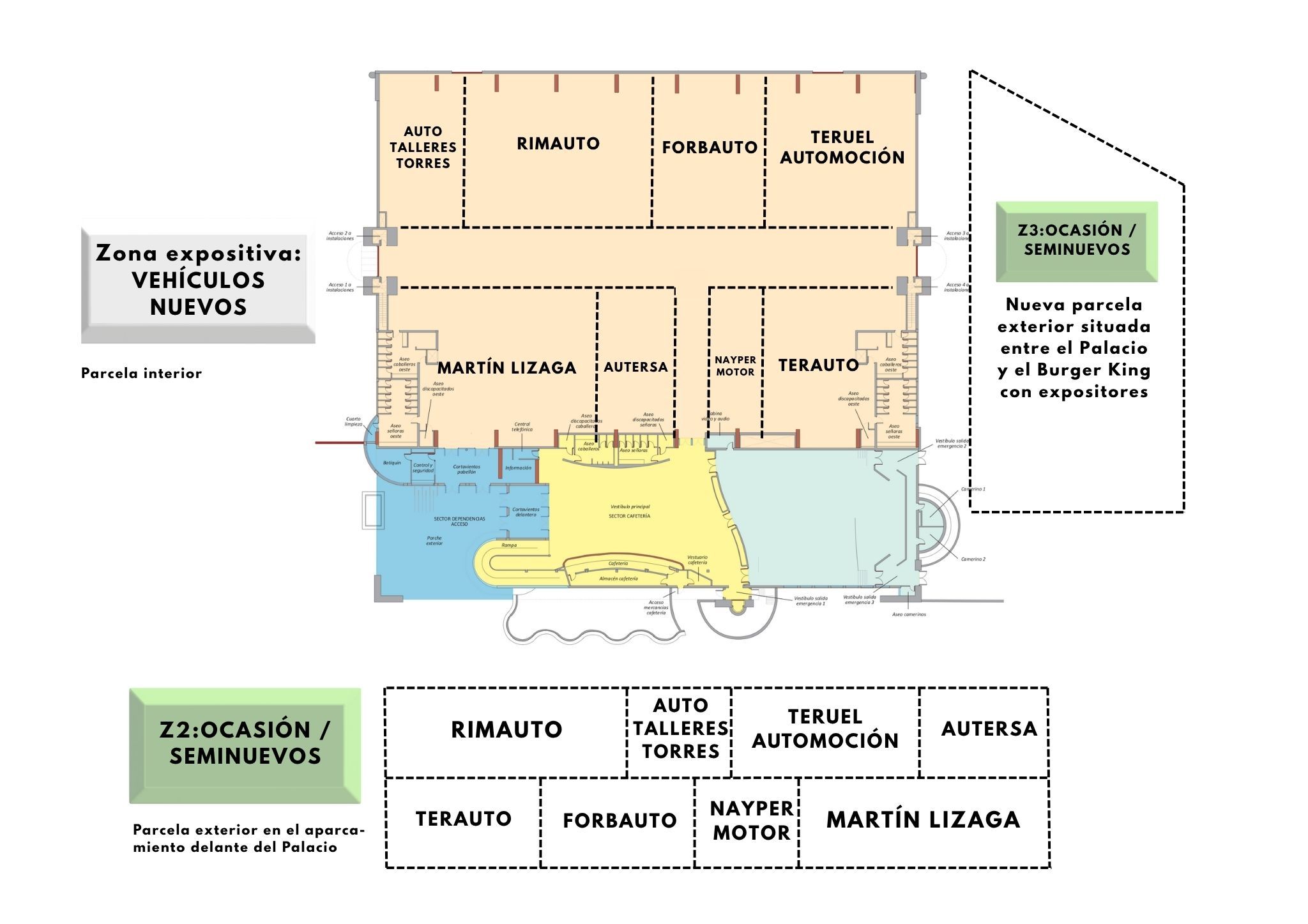 Este año, la Feria Sobre Ruedas amplía su espacio para acoger más expositores y vehículos. La zona interior del Palacio de Exposiciones, la zona expositiva estará dedicada a los vehículos nuevos, mientras que el aparcamiento delantero acogerá los modelos de ocasión y seminuevos. Como principal novedad, se incorpora una nueva zona en la parcela del recinto ferial, entre el Palacio y Burger King, destinada también a vehículos de ocasión y seminuevos, creada ante la necesidad de ampliar la feria por su oferta y crecimiento.