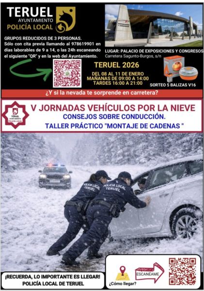 El Ayuntamiento de Teruel, a través de la Policía Local, organiza las V Jornadas de Vehículos por la Nieve, una iniciativa formativa destinada a mejorar la seguridad vial y preparar a los conductores ante situaciones invernales.
